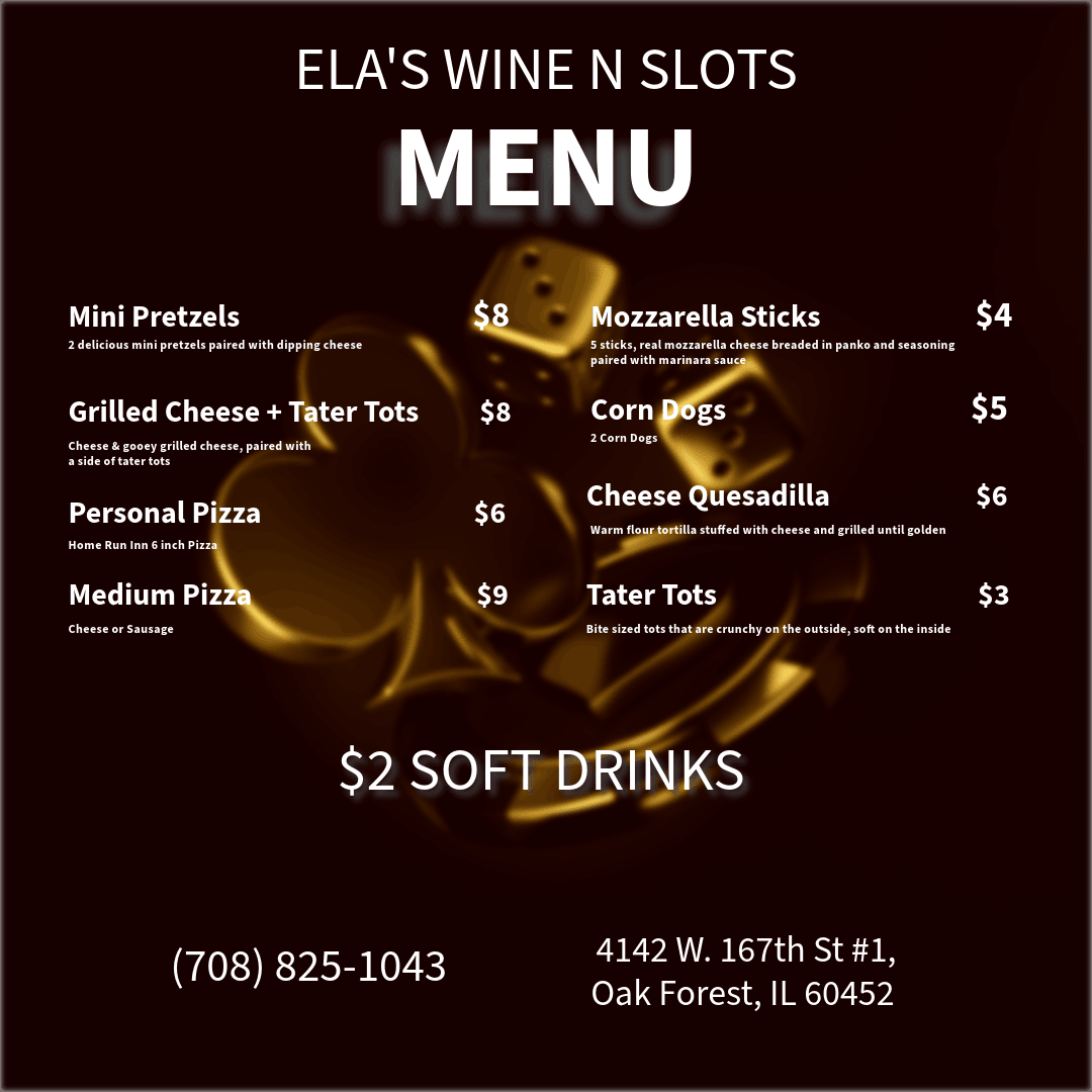 At Ela's, we've made it effortless to savor our delicious food while playing our exciting slot machines. Simply take a seat at one of our comfortable tables, place your food order, and let our friendly staff bring your meal right to you.